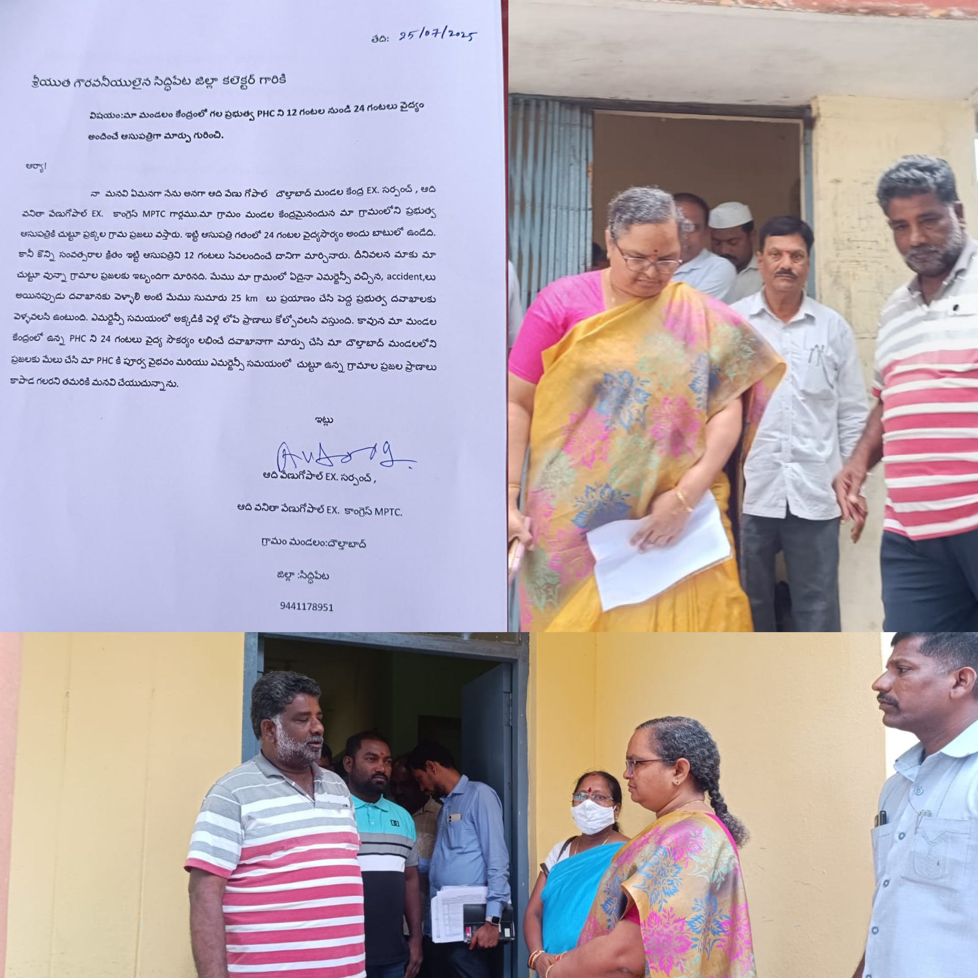 దౌల్తాబాద్ మండల కేంద్రంలో ప్రభుత్వ ఆసుపత్రిని 12 గంటల నుండి 24 గంటల వరకు మార్చాలని సిద్దిపేట జిల్లా కలెక్టర్ శ్రీమతి హైమావతి గారికి దౌల్తాబాద్ మాజీ సర్పంచ్ ఆది వేణుగోపాల్ గారు వినతి పత్రం ఇచ్చి కోరగా ఆమె సానుకూలంగా స్పందించారు.