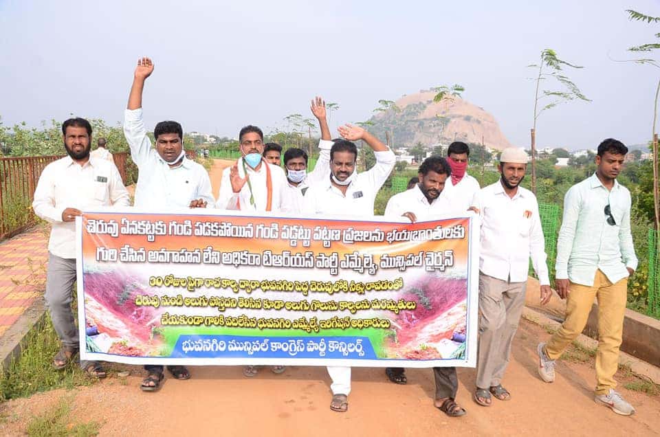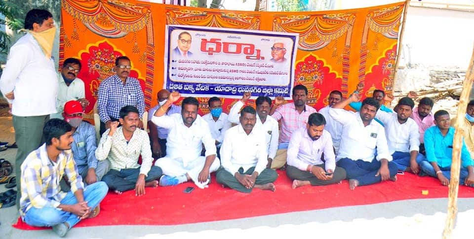 • A dharna was organized by the former municipal chairman of Bhongir to show that the democratic system in the state is being brushed aside and that the leaders of the public associations should take action to support the poor and weaker sections of the people.