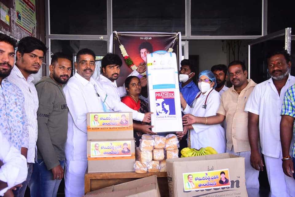 ప్రతీక్ రెడ్డి, 9వ వర్ధంతి సందర్భంగా ప్రతీక్ ఫౌండేషన్ ఆధ్వర్యంలో డాక్టర్ లకు హాట్ కూల్ ఫ్రీజ్ మరియు రోగులకు గ్లూకోజ్, బ్రేడ్స్ ,పండ్ల పంపిణీ నిర్వహించడం జరిగింది.