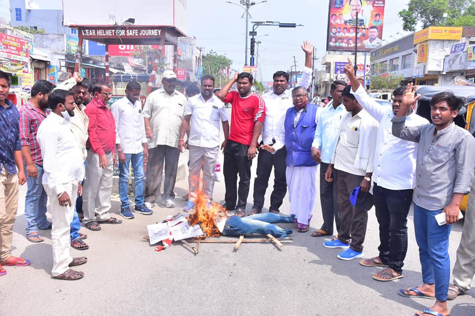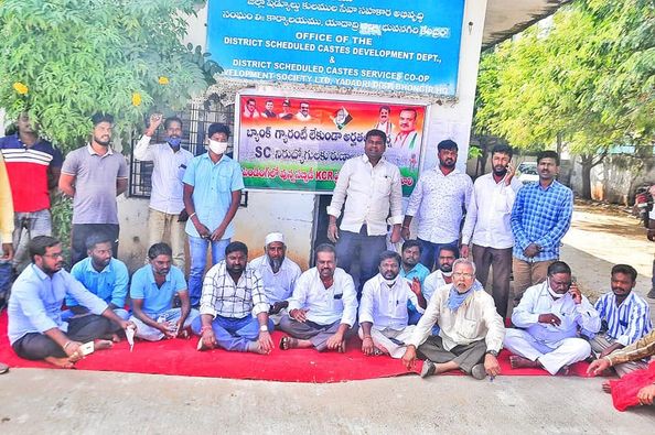 • Under the auspices of the Congress affiliates in front of the SC Corporation office, the KCR government held a dharna to give loans directly to the SC unemployed — unconditional release of 2 loans subsidy by banks immediately.