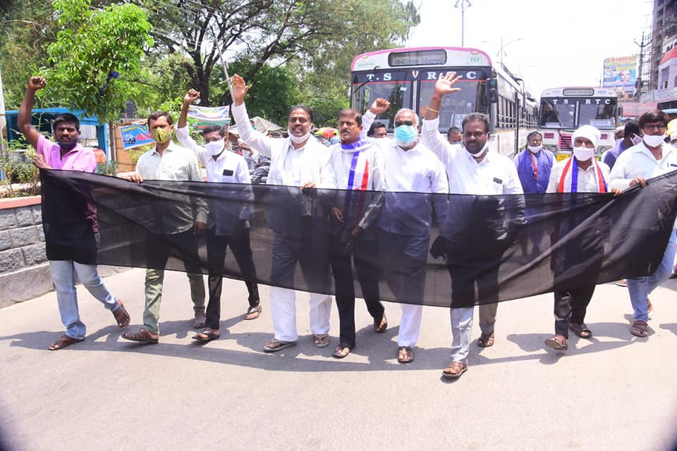 రైతు కోసం మరియు అంతర్జాతీయంగా కుడ్రాయలు ధరలు తగ్గిన రోజు-రోజు పెట్రోల్,డీజల్ ధరలు పెంచడాని నిరసిస్తూ రాజ్ భవన్ వెళ్తున్న కాంగ్రేస్ నాయకులను అక్రమంగా అరెస్టులు చేసి ప్రజా ఉద్యమాలు ఆపలేరు”