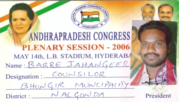 Barre Jahangir is the Former Chairman of Bhongir Municipality and District(Disha) Vigilance Monitoring Committee Member.