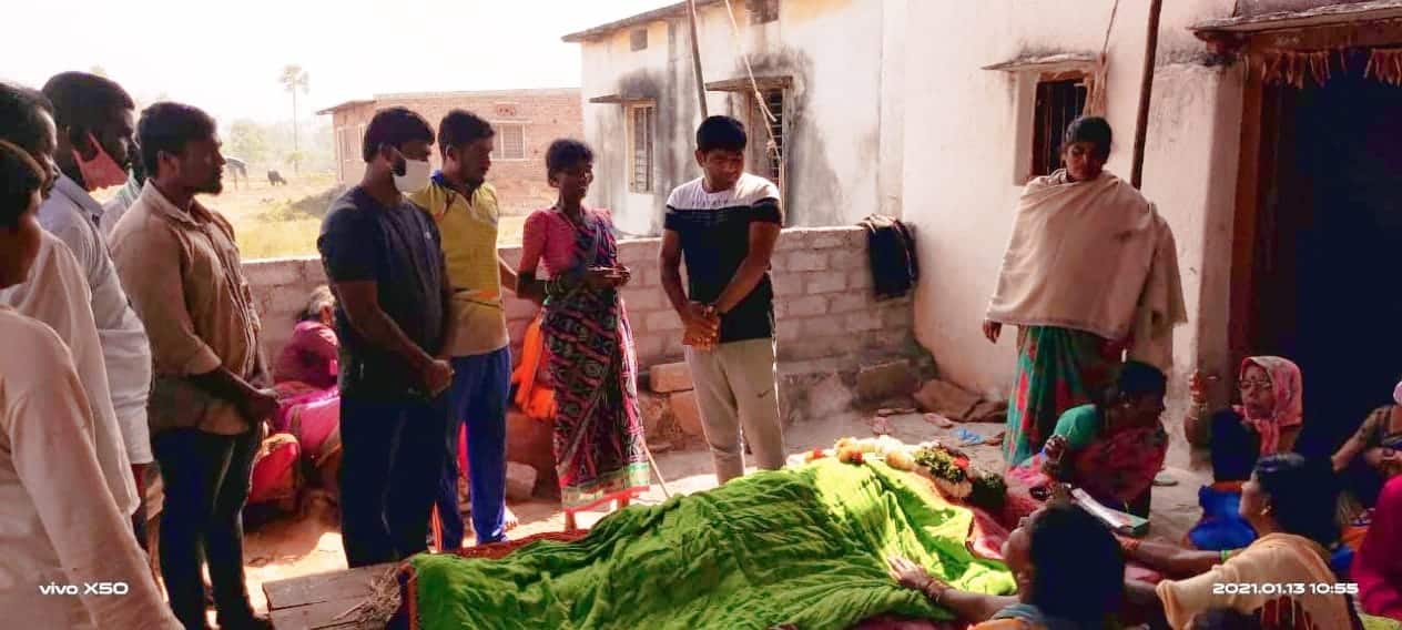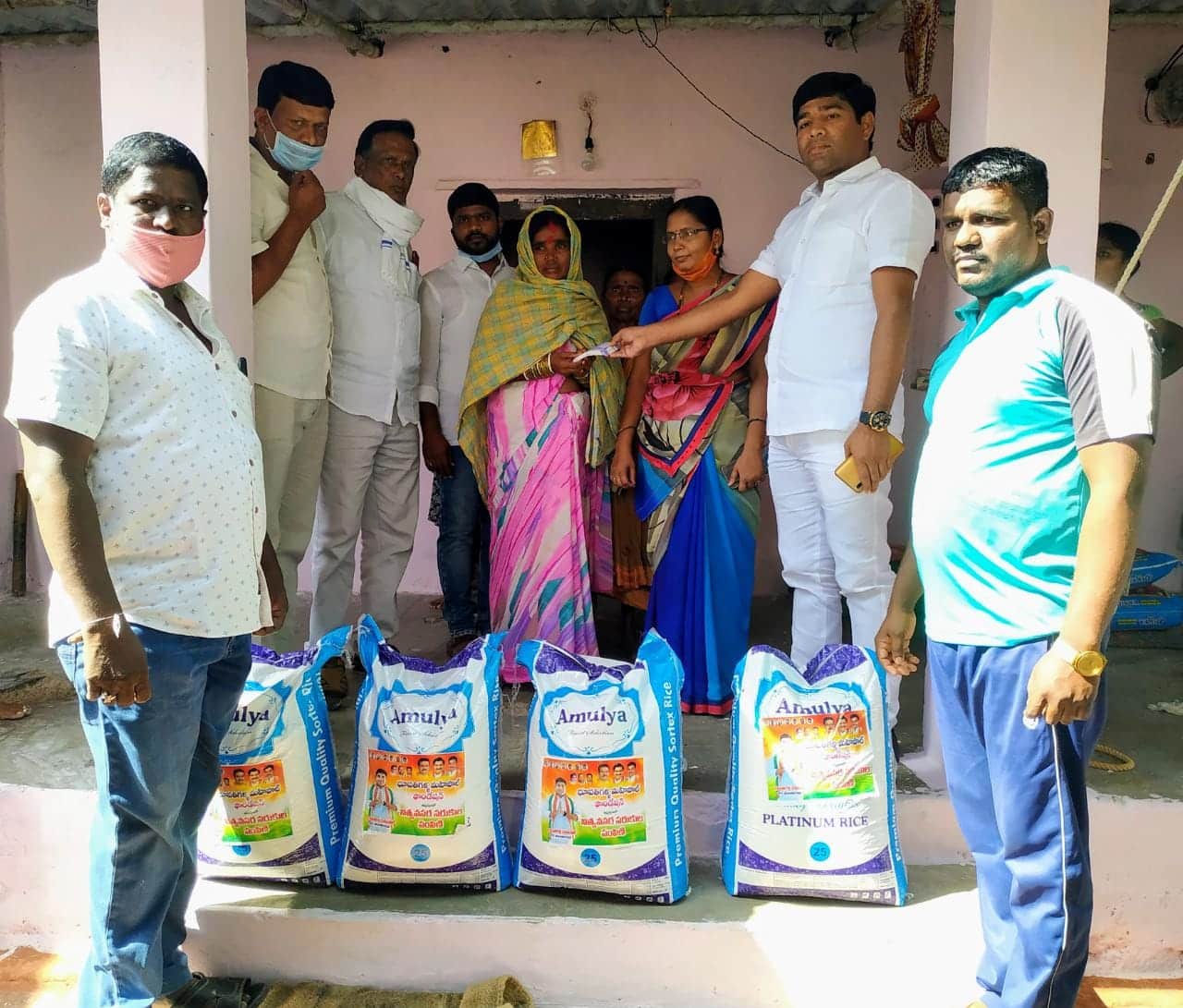 > Mahipal assisted by providing Rice Bags to the family members of Laxman as he died due to his ill health at Eliminedu village.