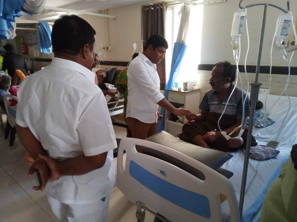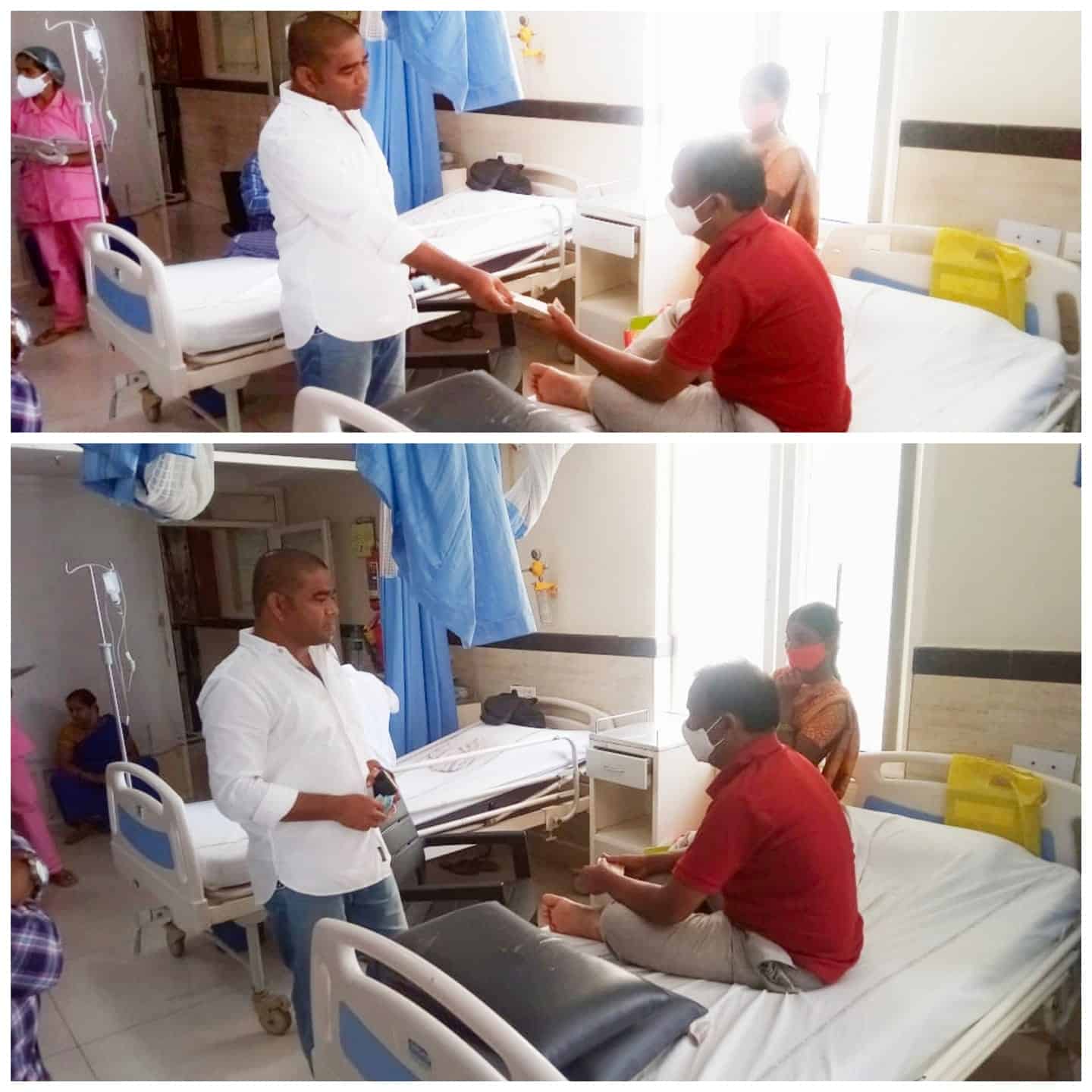 > Ibrahimpatnam ZPTC Bhupathigalla Mahipal donated money to his family members to help him with his kidney and liver problems at NIMS Hospital in Hyderabad.