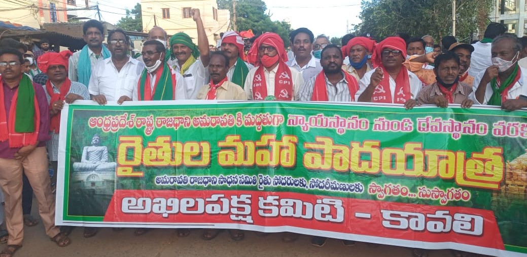 ఆంధ్రప్రదేశ్ రాష్ట్ర అమరావతి కి మద్దతుగా న్యాయస్థానం నుండి దేవస్థానం వరకు రైతుల మహా పాదయాత్ర నిర్వహించిన అఖిలపక్ష కమిటీ నాయకులు.