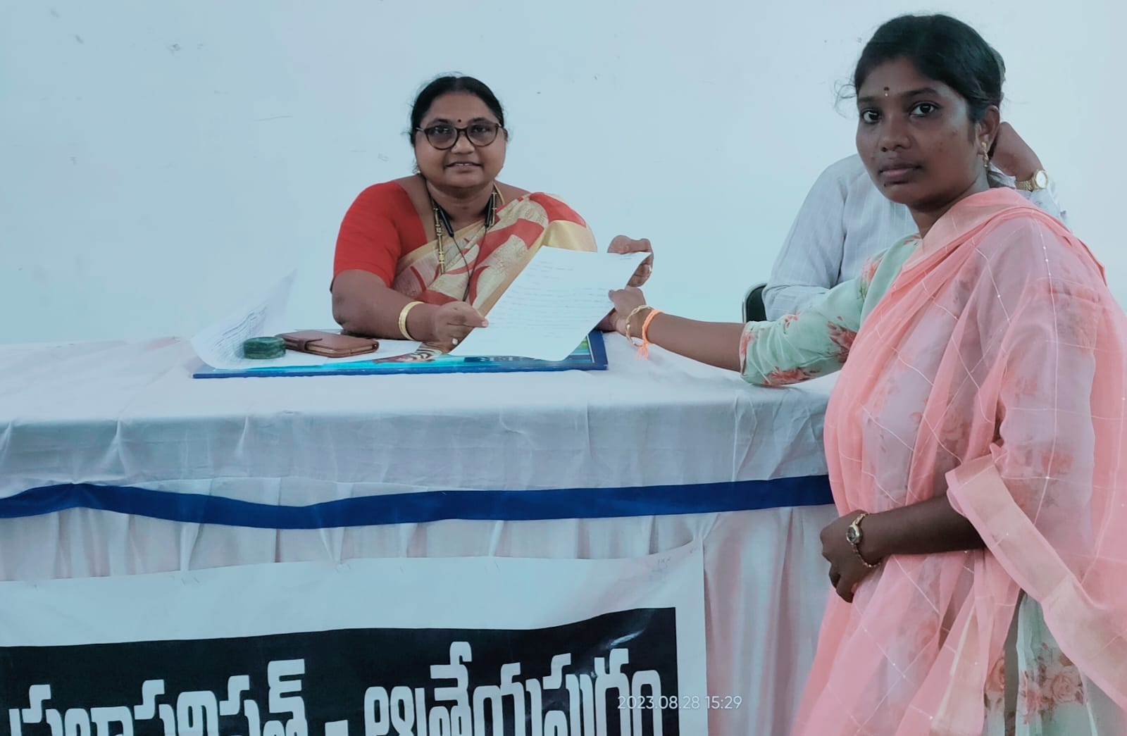 During the Mandal Sashaktikaran Abhiyan training program in Vijayawada, BJYM State President Mitta Vamsi Krishna and BJYM National Office Incharge Mr. Vineet Vats Tyagi, esteemed chief guests, presented Chinnari with her letter of appointment as the State Secretary of BJYM.
