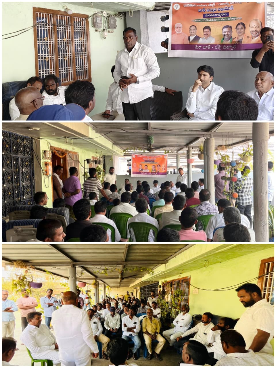 కేంద్రంలో బీజేపీ పార్టీ అధికారంలోకి వచ్చి 11.సంవత్సరాలు విజయవంతంగా పూర్తి చేసుకున్న సందర్భంగా గౌరవ ప్రధాన మంత్రి శ్రీ నరేంద్ర మోడీ గారి నాయకత్వంలో మన దేశం శరవేగంగా అభివృద్ధి పథంలో ముందుకు తీసుకువెళుతూ మోడీ గారు దేశ ప్రజల కోసం అనేక సంక్షేమ పథకాలు అమలు చేస్తున్నరు కాబట్టి వాటిని ప్రతి గ్రామంలోనీ ప్రతి గడప గడపకు చేరే విధంగా ప్రచార కార్యక్రమలు చేయాలని కార్యకర్తలకు దిశ నిర్దేశం చేయడం జరిగింది.