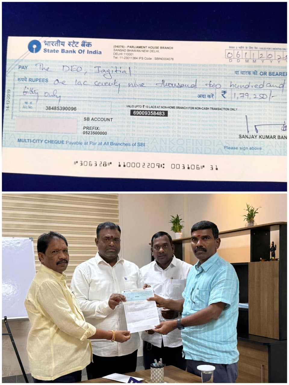 చెక్కు అందజేత