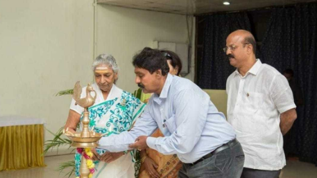 గాయని గౌ. ఎస్ జానకి (జానకమ్మ) గారిని గౌరవప్రదంగా కలిసి కార్యక్రమాన్ని ప్రారంభోత్సవం చేసిన డాక్టర్ చంద్రప్ప గారు.
