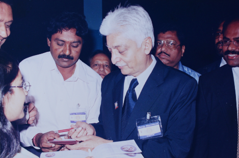 విప్రో చైర్మన్ శ్రీ. అజీమ్ ప్రేమ్ గారిని గౌరవప్రదంగా కలిసి మాట్లాడుతున్న డాక్టర్ చంద్రప్ప గారు.