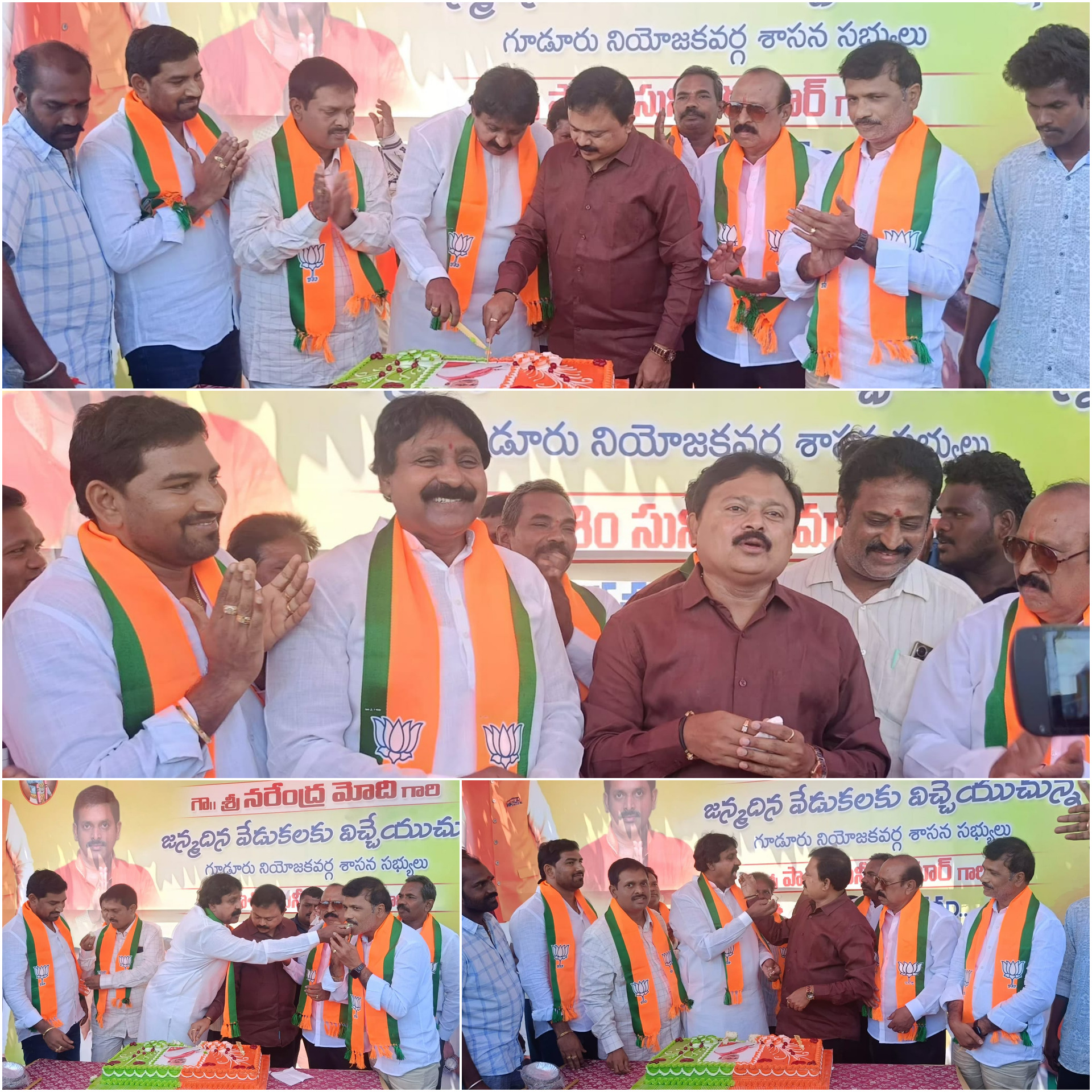 - On the historic occasion of Hon’ble Shri Narendra Modi’s election as the Prime Minister of India for a third consecutive term, BJP Tirupati District President Dr. Chandrappa led spirited celebrations at the district party headquarters. Senior party leaders, karyakartas, and Yuva Morcha and OBC Morcha representatives joined the event with enthusiasm, marking the moment with fireworks, festive slogans, and mutual felicitation. The gathering symbolized unity and renewed commitment, as leaders and workers exchanged sweets and extended congratulations, reflecting the collective pride and dedication of the party cadre.