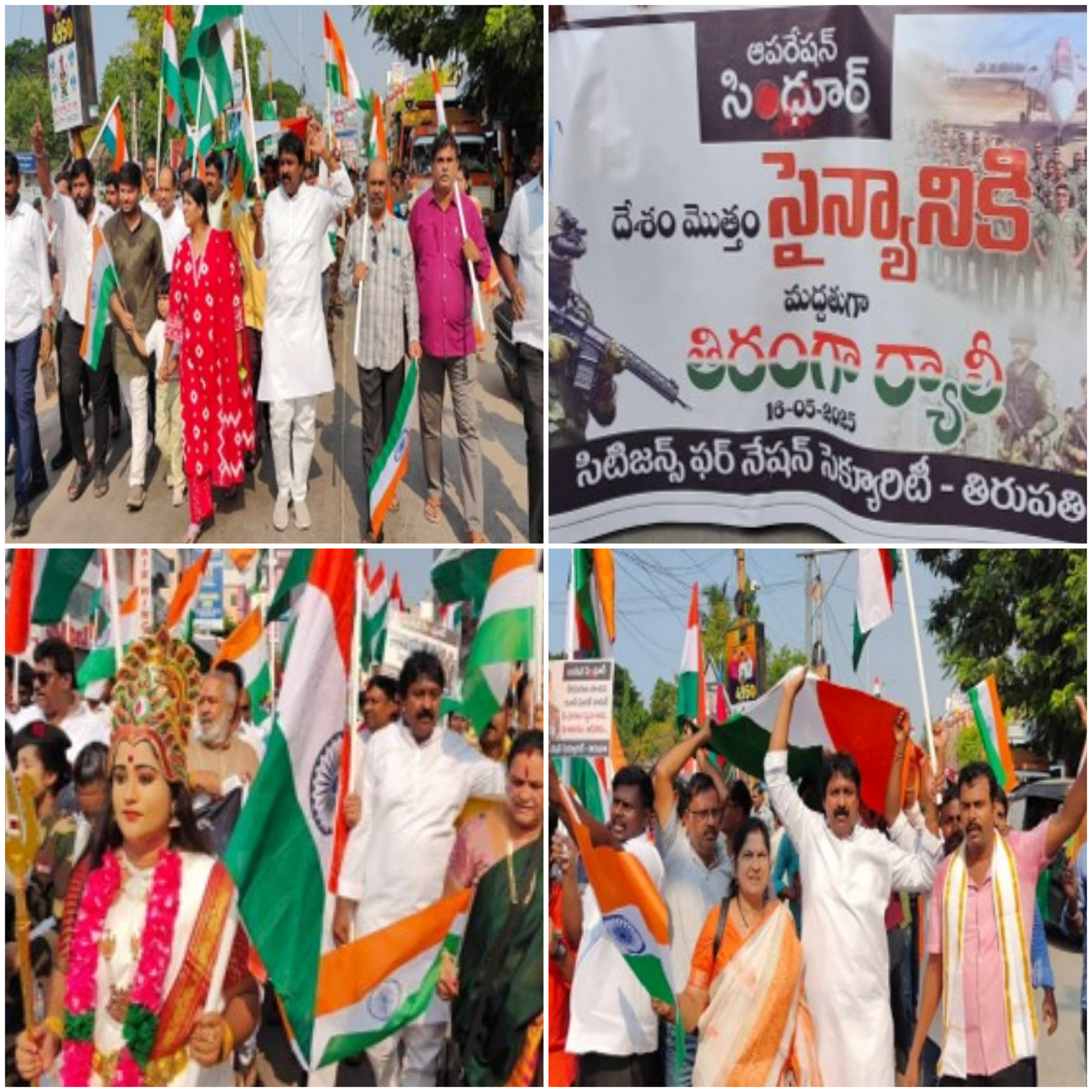 Condemning the terrorist attack on tourists in Pahalgam, Jammu and Kashmir, Tirupati District BJP former president Dr. Cchandrappa, along with members of the Rashtriya Swayamsevak Sangh, Akhil Bharat Vidyarthi Parishad, Bajrang Dal, BJP leaders, activists, business associations and the public, held a candlelight protest rally on four streets against the terrorist attack, paying tribute to those who lost their lives in the Kashmir terrorist attacks. - A grand “Tiranga Rally” was organised in Tirupati in solidarity with the Indian Army, which fought at the risk of their lives in Operation Sindoor. Former BJP Tirupati District President Dr Cchandrappa was the chief guest at the rally held from the MR Palli Circle to the Annamayya Circle.