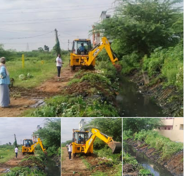 డ్రెయిన్లు పూడిక తీయుట, మరియు రోడ్లు పక్కన చదును చేయు కార్యక్రమ.