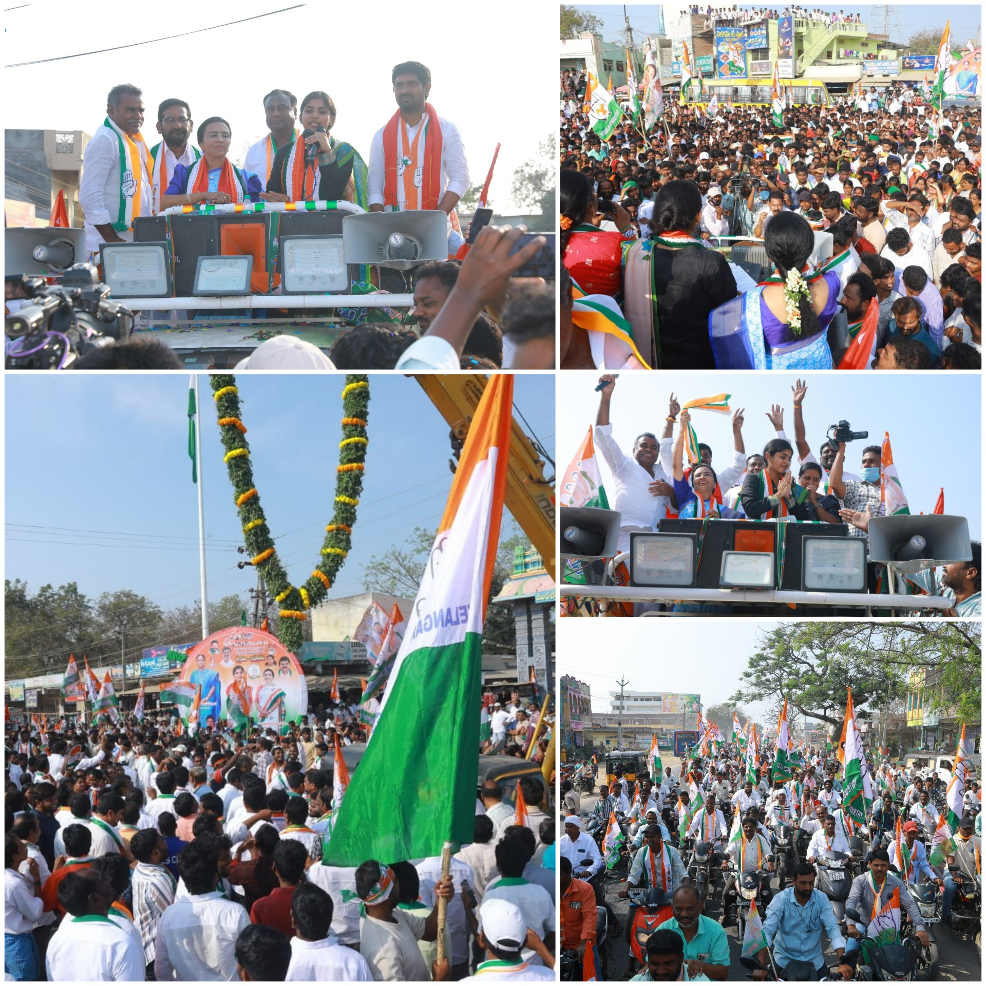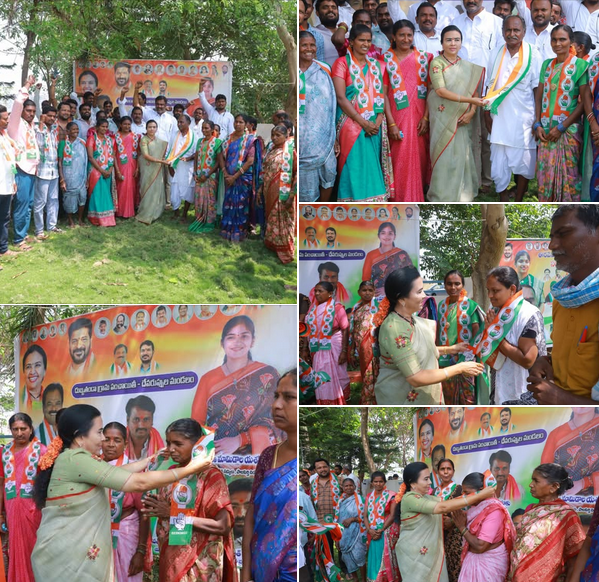 On the concluding day of the third phase of elections in Palakurthy village, Palakurthy MLA Smt. Yashaswini Reddy and TPCC Vice President Smt. Jhansi Rajender Reddy actively engaged in intensive door-to-door campaigning and led a spirited rally, earnestly appealing to the electorate to cast their votes in favour of the Congress party candidate, Smt. Kammagani Pushpalila Naganna and secure her triumph with an overwhelming majority in the Palakurthi Major Gram Panchayat Sarpanch elections while extending their support to the Congress nominee.