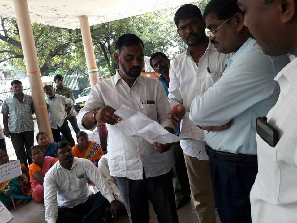 అధికారులకు గ్రామస్థులు చేస్తున్న ధర్నా యొక్క ఉదేశాన్ని తెలియజేస్తున్న సందర్భము