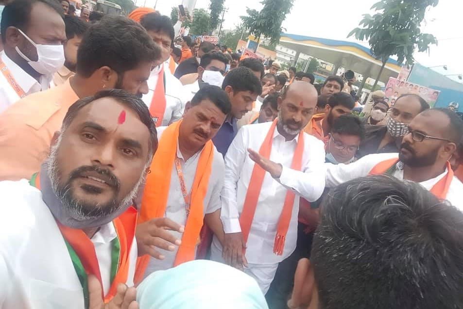 బిజెపి బండి సంజయ్ గారి పాదయాత్రలో భాగంగా వారితో కలిసి ప్రజా సమస్యలు తెలుసుకుంటూ పాదయాత్ర చేయడం జరిగింది