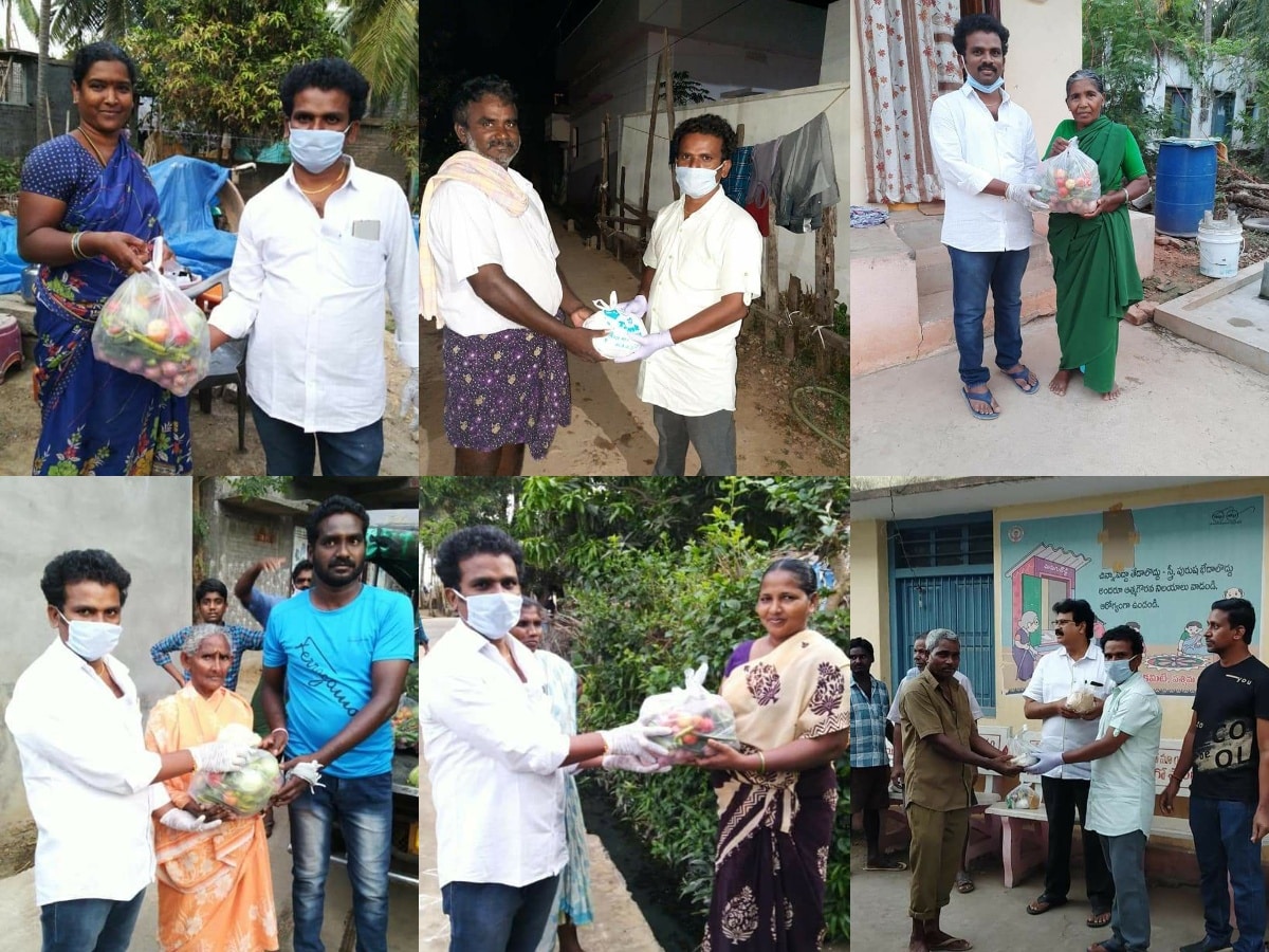 • Rajashekar distributed Rice, Vegetables, to the village people during COVID-19 lockdown time.