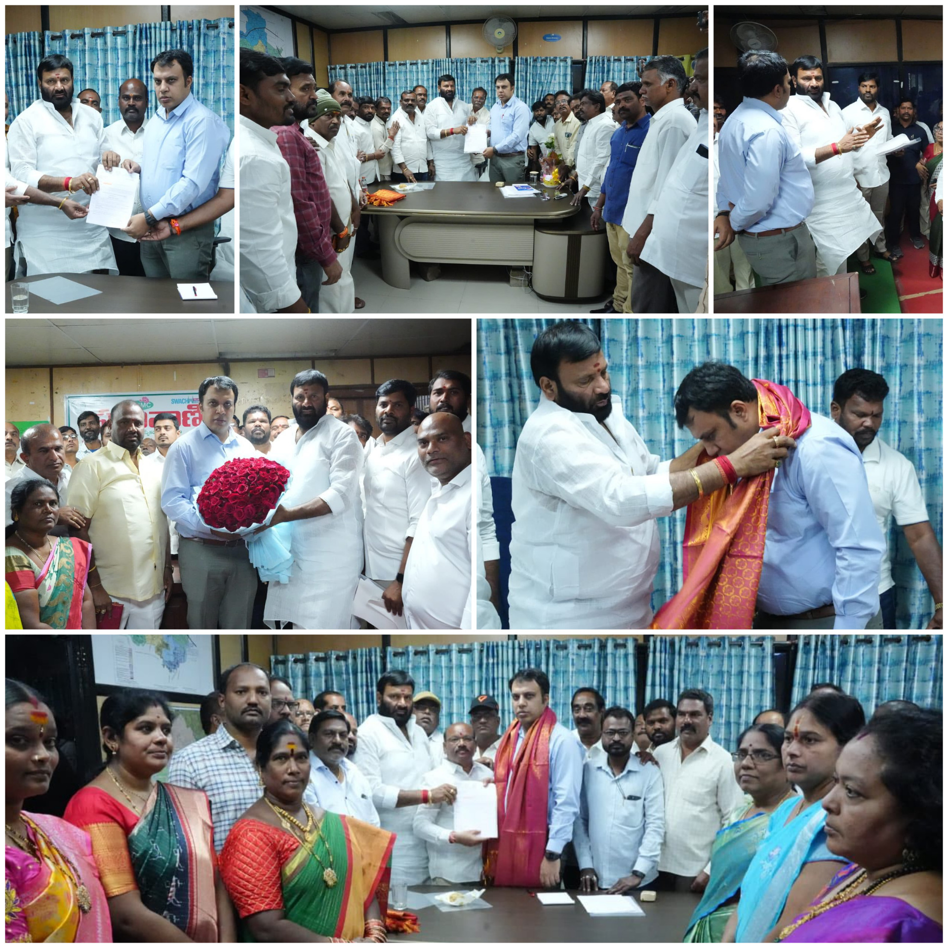 - To celebrate the birthday of BJP OBC Morcha state executive committee member, Sadanandam, former MLA and distinguished BJP state leader, Kuna Srisailam Goud, organized a heartwarming gesture. At his residence, he generously distributed clothes to the dedicated sanitation workers. This noble act exemplified his commitment to honoring and supporting those who play a vital role in keeping the community clean and functional. The occasion became a heartfelt acknowledgment of their hard work and a way to mark Sadanandam’s birthday with a touch of kindness and benevolence.
