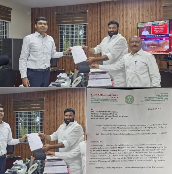 - Former MLA and BJP state leader Kuna Srisailam Goud, along with other BJP leaders and GO 59 applicants, staged a protest in front of the Quthbullapur Revenue Office. The protest was in response to the non-payment of fees by revenue officials, demonstrating their commitment to addressing the issue and demanding fair treatment for the applicants.