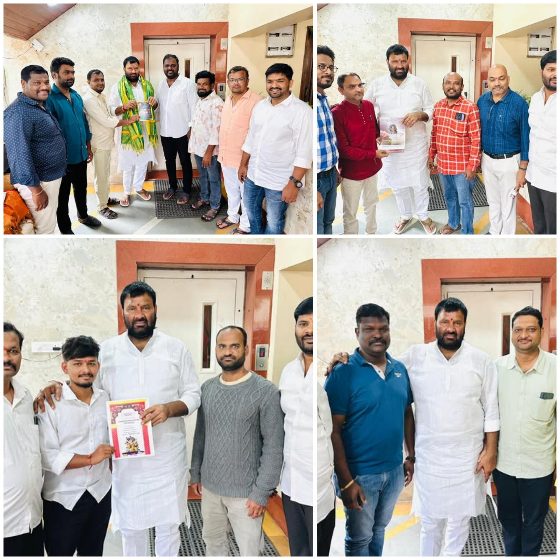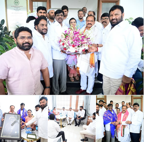 - On the occasion of his appointment as the Chairman of the Election Management Committee of Telangana BJP, Mr. Etela Rajender was greeted by Mr. Kuna Srisailam Goud at his residence in Sharpener.