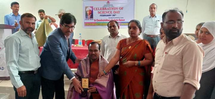 >Science Day: Under the auspices of Jana Vignana Vedika, District president Lingampally Dayanand participated in nearly 50 Science Days conducted in the schools, and for his presence and services, he was honored with a shawl and a boke. The main aim of Science Day is to propagate scientific temper and eradication superstitions, Strengthen public awareness of the role of science for peaceful and sustainable societies