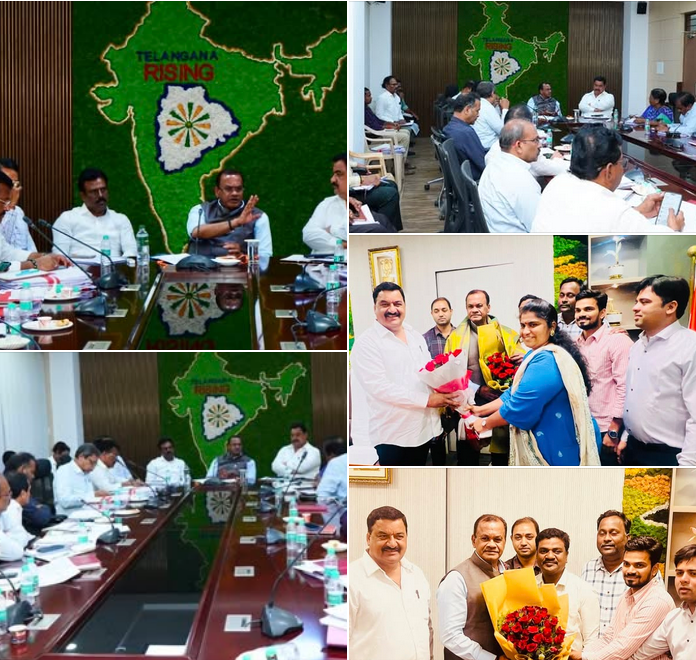 - The Turkayamjal Municipality Photo and Video Photographers Association paid a respectful visit to Municipal Chairperson Malreddy Anuradha Ram Reddy. During this auspicious meeting, the Chairperson had the honor of inaugurating the association’s new photo studio, unveiling their business cards, and officially launching their contact details. This gesture of support from the Chairperson further strengthens the bond between the association and the Municipality, fostering collaboration and growth within the local photography community.