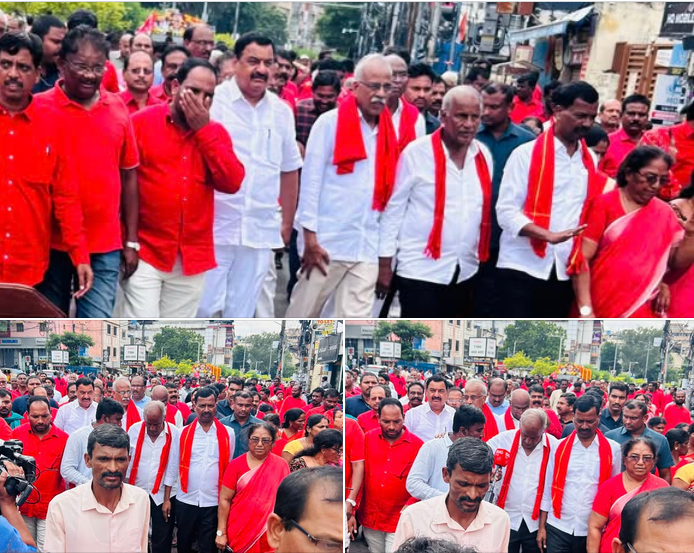 - During the Bharat Bandh program held at Vanasthalipuram, LB Nagar Constituency Incharge, Malreddy Ram Reddy, actively participated alongside leaders from various political parties. Their collective call was to protest against the anti-people policies of both the Central and State governments. However, the situation took a turn when the police intervened and arrested Malreddy Ram Reddy, along with the other all party leaders, on account of their involvement in the demonstration. They were subsequently taken to the Vanasthalipuram Police Station.