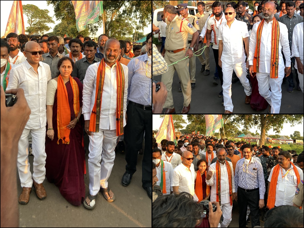 బీజేపీ తెలంగాణ రాష్ట్ర అధ్యక్షుడు బండి సంజయ్ ప్రజా సంగ్రామ యాత్రలో పాల్గొన్న మీసాల శ్రీనివాస్ రావు గారు మరియు సతీమణి సవిత గారు