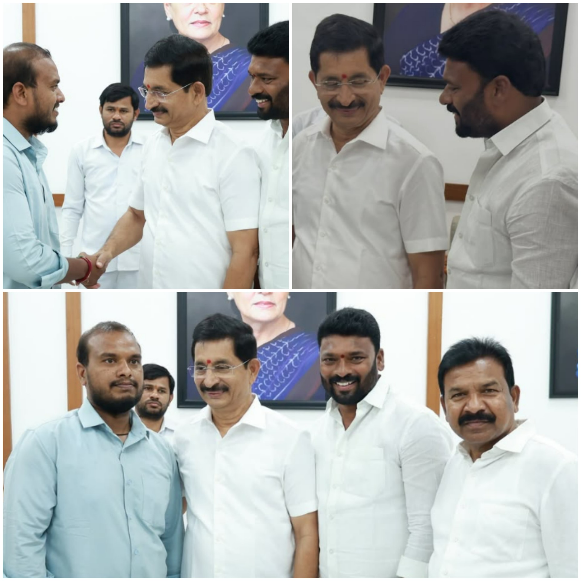 గాంధీ భవన్ లో కాంగ్రెస్ వర్కింగ్ కమిటీ మెంబర్ శ్రీమతి దీపా దాస్ మున్షీ గారిని మర్యాదపూర్వకంగా కలిసిన యూత్ కాంగ్రెస్ ప్రెసిడెంట్ శివసేన రెడ్డి గారు తెలంగాణ రాష్ట్ర యువజన కాంగ్రెస్ జనరల్ సెక్రెటరీ మెరుగు రమేష్ రెడ్డి గారు మరియు యువజన కాంగ్రెస్ మిత్రులతో కలసి సత్కరించడం జరిగింది
