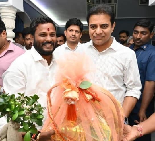 Neelam Madhu Mudiraj made a formal visit to meet the esteemed Minister of Telangana Municipal Administration and Urban Development, “Sri.Kalvakuntla Taraka Rama Rao” with an act of courtesy and respect, symbolizing the recognition of their respective roles and responsibilities.