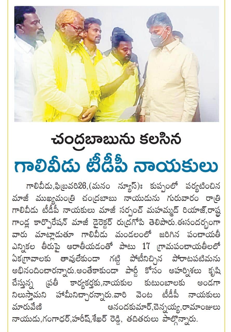 Ex-State Director of Gandla Corporation, BC Leader, TDP, Gandlapalli, Galiveedu, Tirupati, Kadapa, Andhra Pradesh.