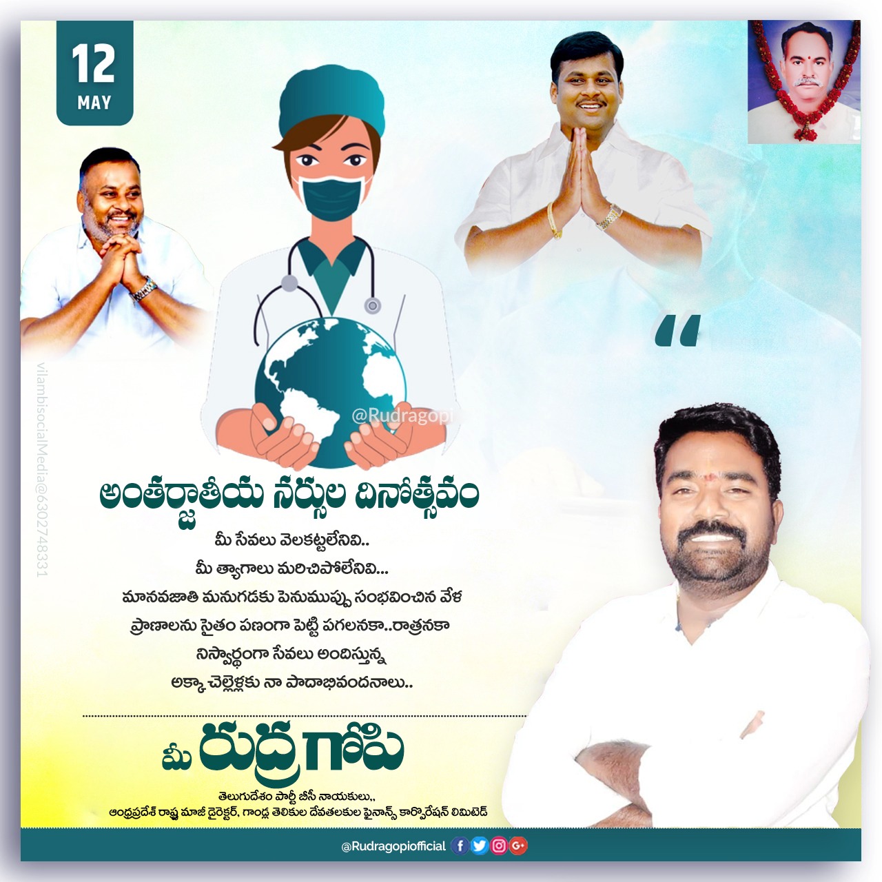 Rudra again Re-joined the Telugu Desam Party. In 2012, He was the Co-Ordinator of Tirupati Chandragiri Constituency Chetupally(G.P) and Active Role. He was the District General Secretary of BC Cell Tirupati from the TDP. In 2018, He was the Observer of Nagari from the TDP. In 2018, Rudra Gopi has initiated an immortal fast for the Gandla Corporation.