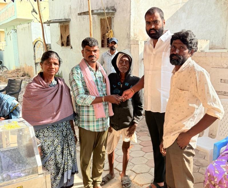 After being informed by friends about the critical condition of Shivarathri Lingaswamy, a resident of Pocharam village, Pocharam Municipality, who has been battling paralysis for several months and struggling to meet medical expenses, Sandeep Reddy, through the SYR Foundation, extended timely financial support of Rp.20,000 for his treatment on the occasion of his birthday, alongside foundation members.