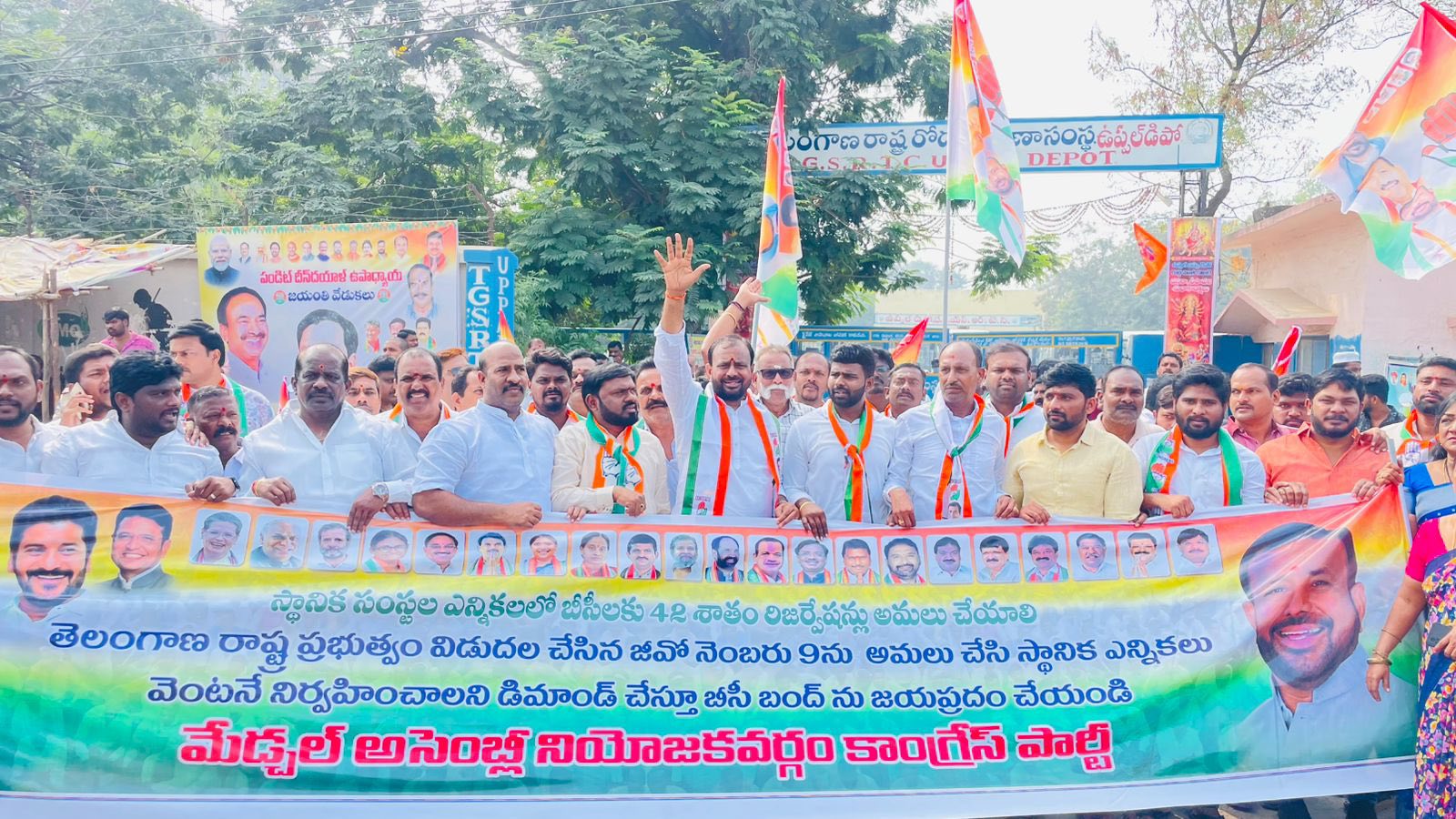 • Thotakura Vajresh Yadav(Jangaiah Yadav), along with all Congress ranks from the Medchal Constituency, marched from the Indira Gandhi monument on Necklace Road to the Election Commission headquarters in Basheer Bagh, headed by TPCC President Revanth Reddy, to defend dissenting voices and preserve democracy.