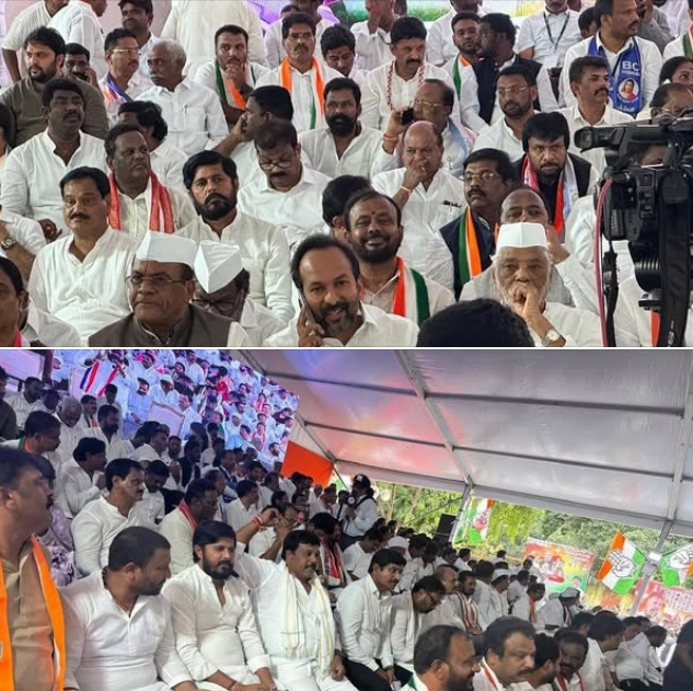 • The “Varidharna” program was held for 48 hours on July 27 and July 28 under the leadership of TPCC president Anumula Revanth Reddy in response to the call from the All India Congress Party and Telangana Pradesh Congress (TPCC) to protest against the anti-farmer policies adopted by the central and state governments in purchasing paddy produced by farmers in Telangana state. Numerous members of the Congress party’s Medchal Assembly Constituency ranks attended. A sizable crowd from the Medchal Constituency gathered under the direction of Thotakura Vajresh Yadav, the Medchal Assembly Constituency Coordinator.