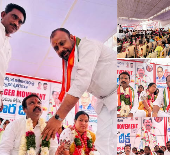 - Thotakura Vajresh Yadav, Mahbubnagar Parliamentary Congress Membership Coordinator, and others are showing solidarity with the hunger strike being held at Mahbubnagar Dharna Chowk TTD Kalyana Mandapam under the auspices of the Mahabubnagar branch of Tribal Unions Joint Action, which is fighting for a 6 per cent to 12 per cent increase in tribal reservations.